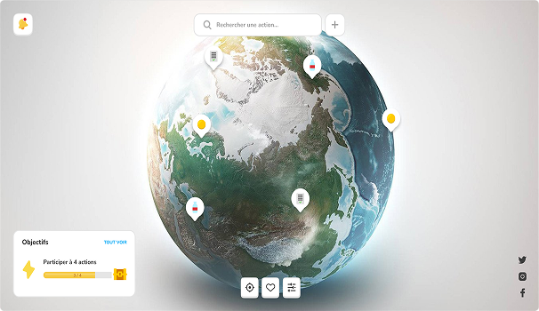Application web interactive en 3D permettant de sensibiliser à la protection des océans via un globe et des événements participatifs. J’étais lead frontend, développant le visuel et les pages en React/Tailwind avec intégration 3D. Voir plus...